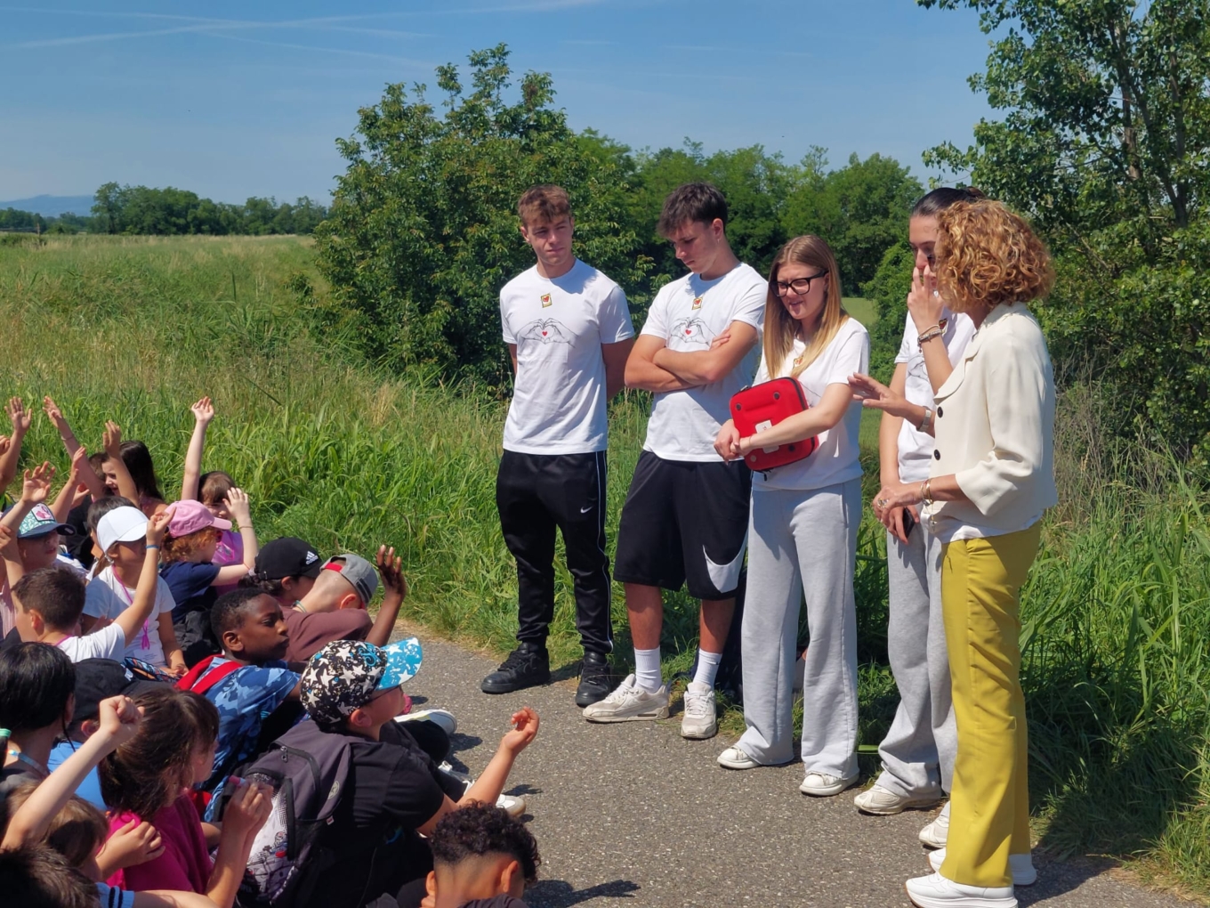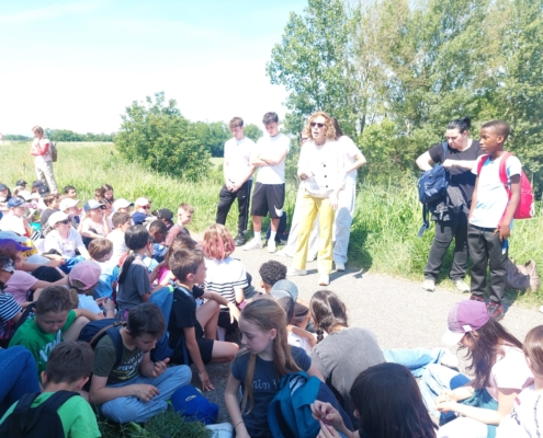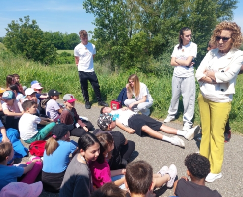 - la Camminata sull`argine del fiume Po presenti alunni primaria del terza circolo con Loredana , Prof di Liceo San Benedetto e ragazzi istruttori per strada