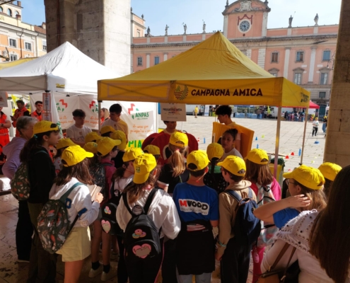 - Coldiretti Festa in Piazza con Prof Liceo San Benedetto, ragazzi istruttori per strada e volontari Anpas