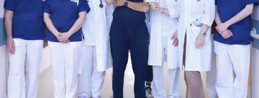 La persona salvata ora è in ripresa e lo vediamo ritratto insieme all’equipe del reparto di cardiologia dell’Ospedale di Piacenza, guidata dalla Dr.ssa Aschieri.