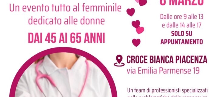 Sabato 8 Marzo solo su appuntamento, orari 09-13:00 14:00-17:00 presso Croce Bianca Paicenza Via Emilia Parmense 19.