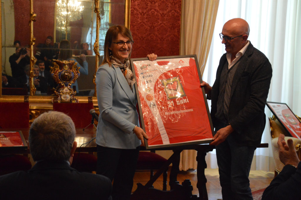 Gli sponsor della maglia: Piacenza Calcio, Pizzapiuuno, Cna, Seta, Bakery, Gas Sales, Intesi.